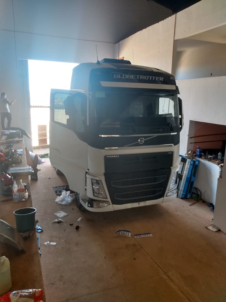 Em seguida os policiais encontraram uma carreta Volvo/FH 540 6X4T, cor branca, já parcialmente desmontada,  a qual tinha ocorrência de furto no município de Correntina (BA).