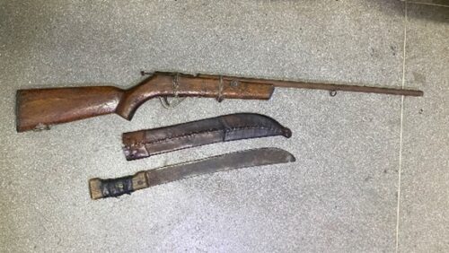 Na abordagem, os policiais apreenderam uma arma de fogo artesanal do tipo “chumbeira” e um facão, que estavam com dois homens, de 21 e 24 anos. Segundo relatos, eles pretendiam usar as armas para intimidar outra pessoa por motivos pessoais.