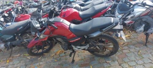 Durante rondas na Rua 10 de Novembro, no Centro, nas proximidades da feira, a guarnição identificou uma motocicleta estacionada em local proibido. Ao proceder com a consulta, foi constatado que o veículo possuía restrição por roubo/furto, além de apresentar sinais de adulteração no chassi.